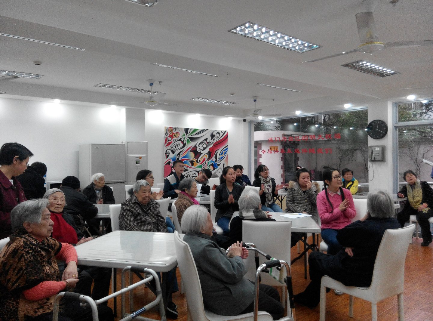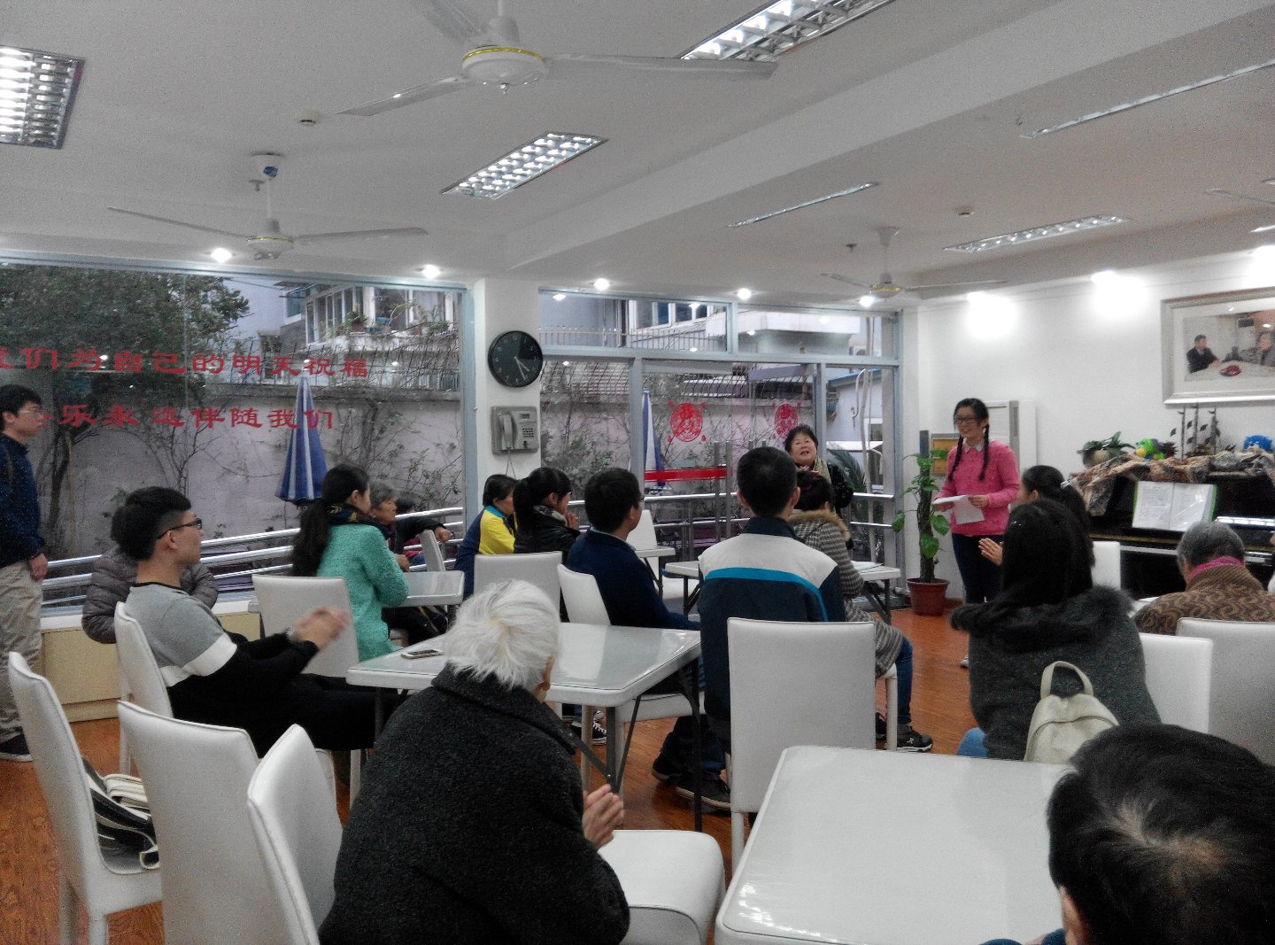 稍后,志愿者们一一做了自我介绍,还跟老人们学习了上海话。志愿者们还进行了才艺展示,有的唱歌,有的朗诵,有的表演魔术......老人们很开心,我们也很高兴。爷爷奶奶们也是多才多艺,也为我们表演了节目,老人们那愉快的神情让我们感到很满足。