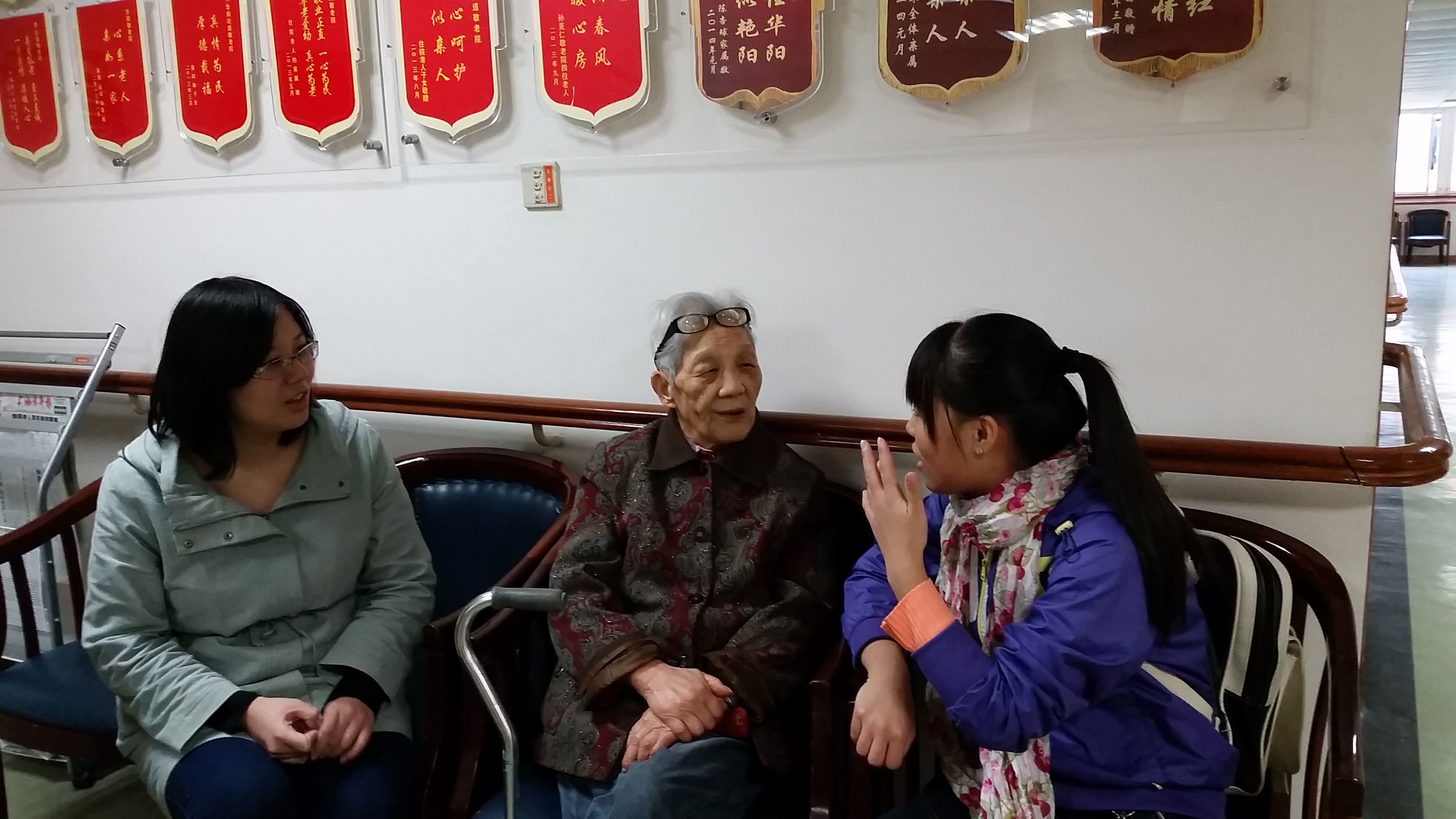 下午二时许,三名管院志管的大一志愿者在大二学姐的带领下,抵达了华阳敬老院。对于志愿者的到来老人们十分欢迎并给与了热情的接待,仿佛把志愿者当作自己的家人,志愿者们和老人们进行了愉快地交谈,涉及的话题从敬老院的居住环境、老人们的家庭背景,直到他们丰富的生活阅历,而他们也向老人们介绍了自己在大学的生活情况。通过交谈,志愿者了解到老人们的晚年生活并不寂寞,子女时常在工作之余看望他们,许多学生志愿团队也来探望他们,社会各界也对老人们关心有加。