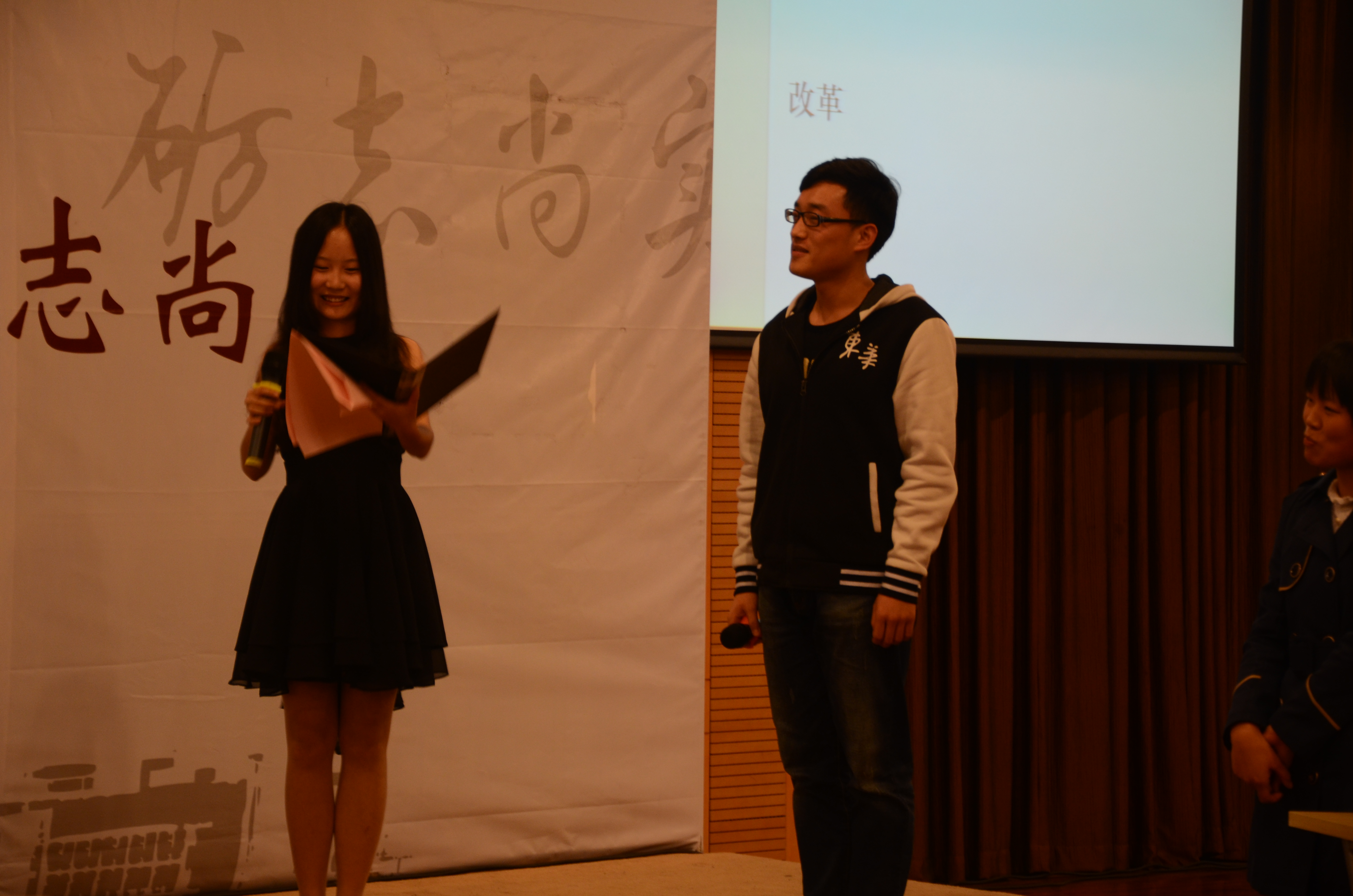 知识竞赛开始之前,在场的师生共同为91直播 学生党建品牌项目——“学生党员服务岗”举行了隆重的揭牌仪式。91直播 91直播 学生党建品牌项目负责老师陈奉磊向在场的师生介绍的“学生党员服务岗”的筹备情况。随后,91直播 党委组织部副部长杜明老师与91直播 91直播 党总支副书记叶晓燕老师一起给“学生党员服务岗”揭牌。揭牌仪式的最后,杜明老师为91直播 ”学生党员服务岗”送上了殷切的期望和祝福。