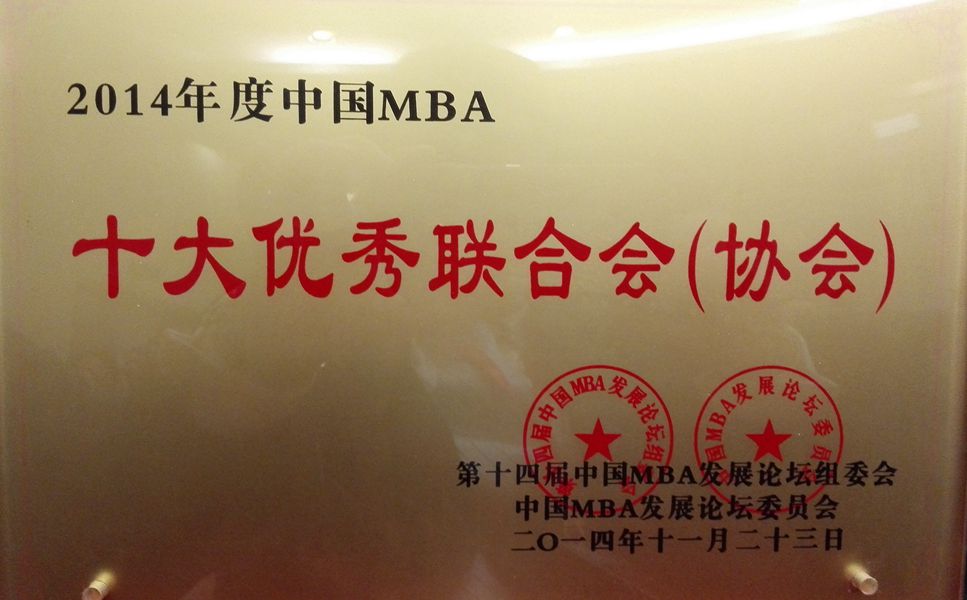 2014年11月23日,第十四届中国MBA发展论坛在北京大学光华91直播 隆重举行。期间,91直播 MBA联合会因其出色的服务理念、强大的凝聚力、卓越的领导力荣获“2014年度中国MBA十大优秀联合会”称号。