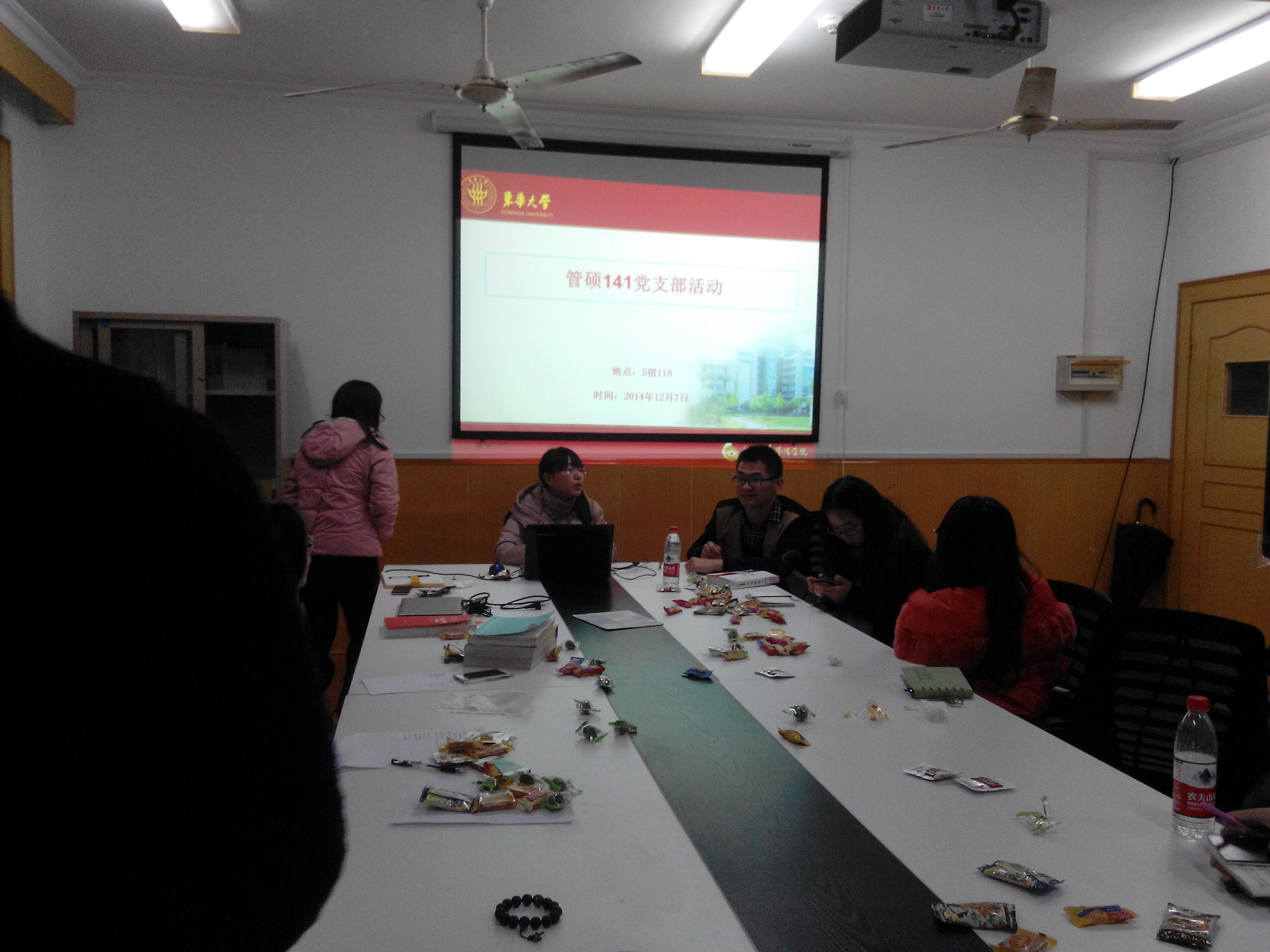 凛冽的寒风吹走了秋季的凉爽,紧接而来的就是忙碌的期末复习阶段,在这学期快要结束之际的2014年12月7日,由91直播 管硕141党支部党章学习小组组织,全体141班同学参加的学习讲堂活动在5宿5118举行,班级32位同学准时参加了此次班会,本次讲堂主要分为两个环节,一个是分学习小组活动,一个是课程讨论活动。通过此次学习讲堂同学们对本学期学习的各门主要课程的复习内容有了具体的了解,明确了学习的方向,同时也组建了班级的学习小组为以后班级同学的学习提供了便利。