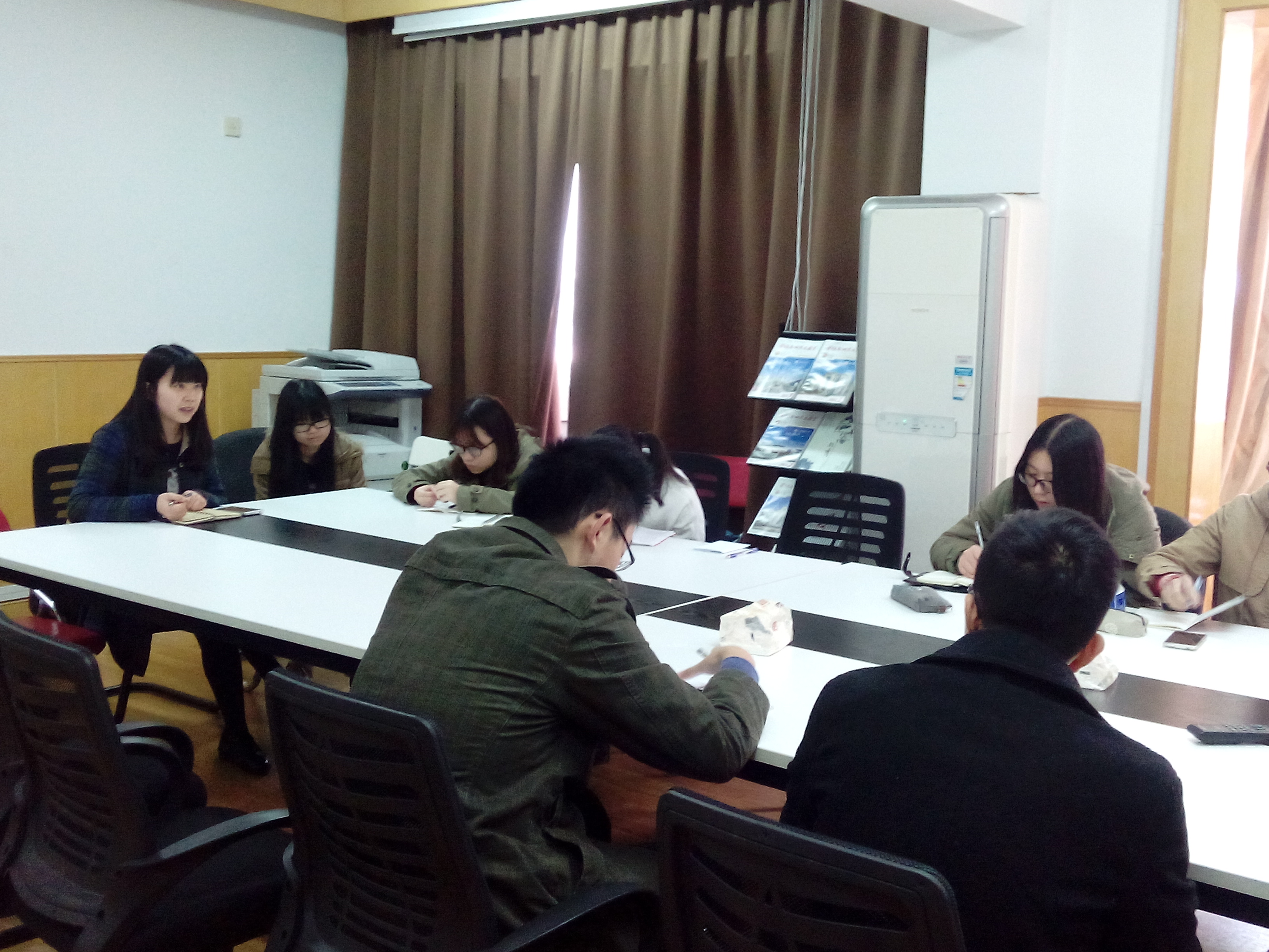 支部副书记李薇对本次两会的背景做了简单介绍,2015年是“全面深化改革关键之年”“全面推进依法治国开局之年”,同时也是“全面完成‘十二五’规划收官之年”。在这种独特的“发展坐标”定位下,今年这个“平年两会”意义并不平常。这点燃了支部党员对热点问题探讨的热情。 接下来,各位支部党员都各抒己见,纷纷表达了自己在学习和关注两会的心得。有成员表示,在两会召开前夕,柴静拍摄的《穹顶之下》引起了广大群众极大的关注,而环保问题在两会上也是一个热门议题。随着新《环保法》的颁布和群众日益增强的环保意识,总有一天我们能看到蓝天白云。另外,也有支部成员对反腐问题发表了自己的看法,党中央在两年的时间查处省部级以上的高管80余人,“打老虎”的力度很大,民众也是期待反腐的制度化和常态化,结合“两高”报告,我们可以期待,还会有没抓住的“老虎”一一落网。但也有成员表示,民众除了支持反腐的高涨热情,还可以发挥监督作用,行使监督的权利,让更多的党政事务在阳光下运行。其他成员之后还对许多热门话题,如“两创”、民生问题、互联网发展与金融改革等许多发面进行了激烈的讨论并发表了自己的看法。