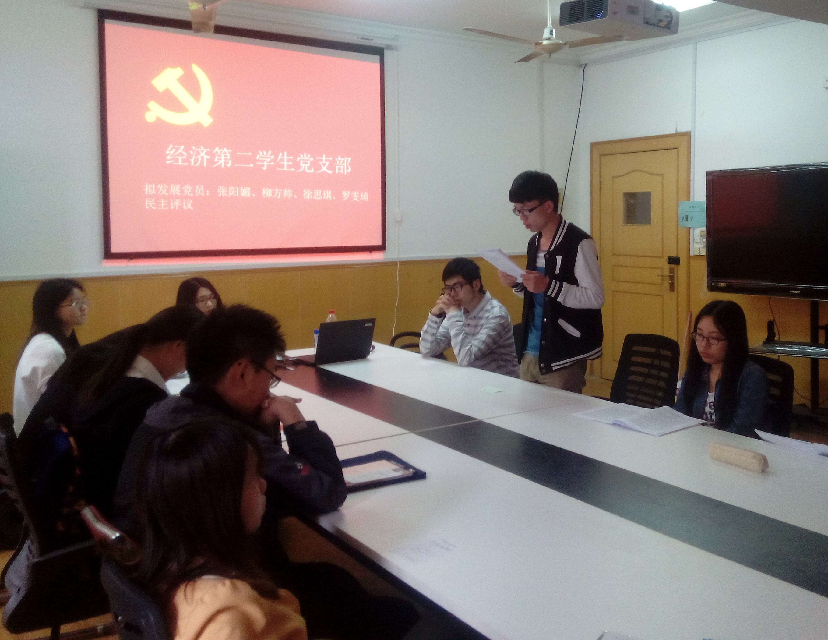 2015年4月29日中午,91直播 经济第二学生党支部在5118召开支部大会,主要议程是柳方帅、罗雯琦、徐思琪、张明媚的预备党员发展。经过多方面考察和培养,经济第二学生党支部的四名积极分子迎来这一重要的时刻。 首先,四位同学分别表达他们的入党动机和意愿,宣读入党申请书。四位同学表情严肃、态度端正、感情真挚,各自阐述了自己的入党动机以及对党的认识,每个人都结合个人经历,将个人的变化和成长与对党组织认识的不断深入紧紧联系在一起。他们真诚的感言,让我们相信当他们真正加入到中国共产党的大家庭后,会更加努力更加优秀,成为更多人的榜样,带动更多人坚定地向党组织靠拢。