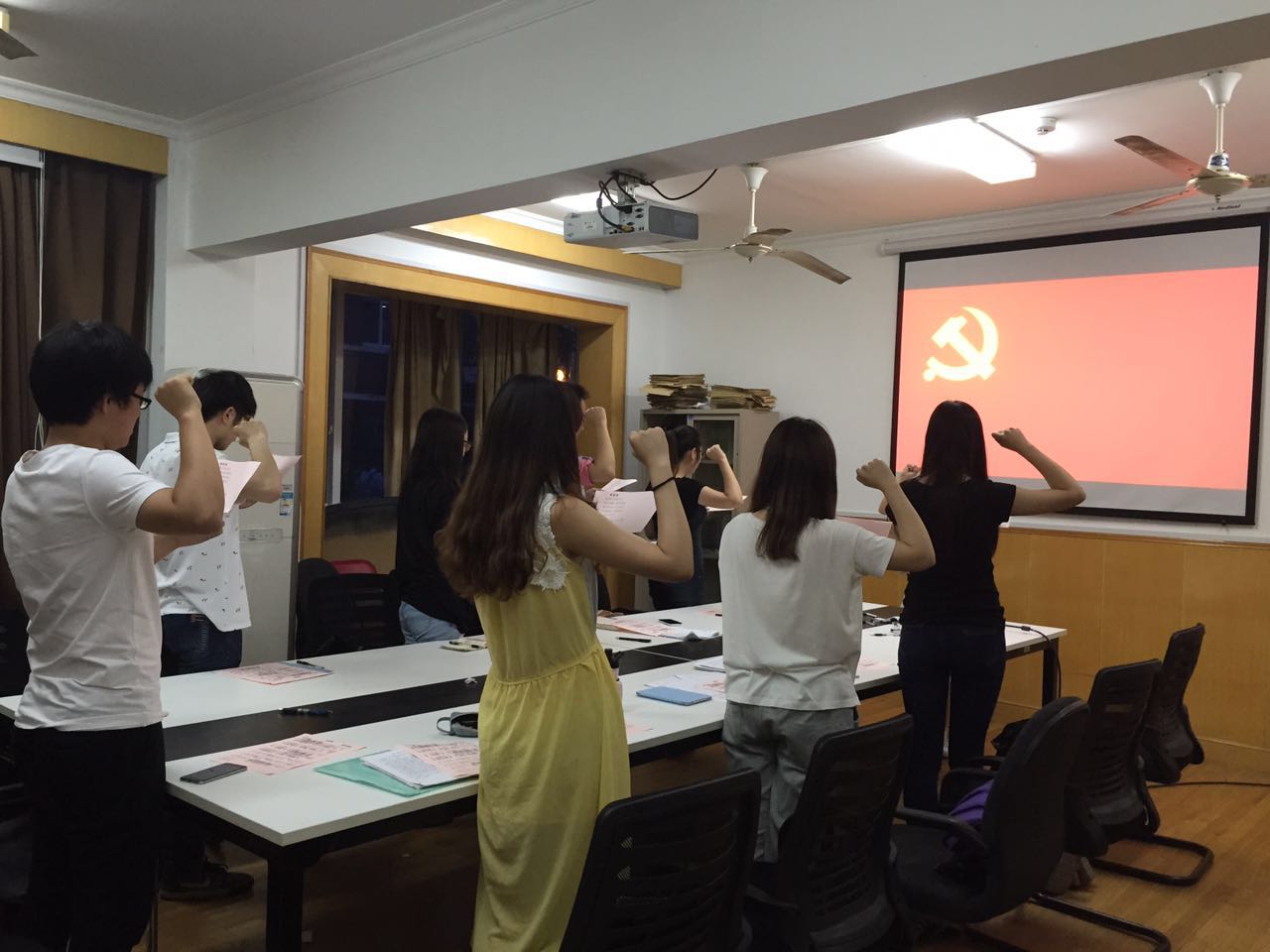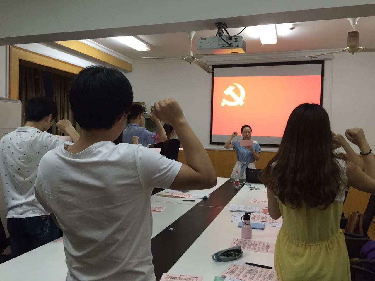 2015年6月8日18:30,蒙蒙细雨的初夏晚上,91直播 延安西路校区5宿118会议室坐满了一群人,他们是会经学生党支部全体成员,他们有9名学生,1名老师。接下来,这里将要举行该支部的毕业生党员离校教育活动,支部将有5名学生党员即将毕业。学生总会有毕业的那天,而作为一名党员,就要做到一辈子全心全意为人民服务,为共产主义事业而斗争。党员,可能会不断更换党支部,但永远不会有毕业的那天,因为这是一辈子的事!