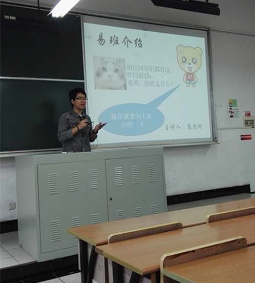 首先,团支书高思帆同学向大家介绍了易班网的由来及主旨。易班是提供教育教学、生活服务、文化娱乐的综合性互动社区。网站融合了论坛、社交、、微博等主流的Web2.0应用,加入了为在校师生定制的教育信息化一站式服务功能,并支持WEB、手机客户端等多种访问形式。易班在高校中设立了学生工作站,开展了丰富多彩的校园文化活动,已经成为全国教育系统的知名文化品牌。并且,我校成为了易班的第一批适用对象之一。