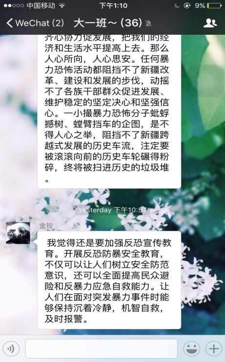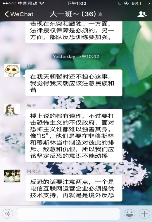 对此金玲、徐画画等同学认为“恐怖主义对中国破坏最大的,不是恐怖主义本身,而是我们对恐怖主义的恐惧。中国作为全球化的一个组成部分,不可能独善其身,作为民众还是应该要积极学习政府推行的反恐怖主义法,加强反恐准备,并有风险意识。”
