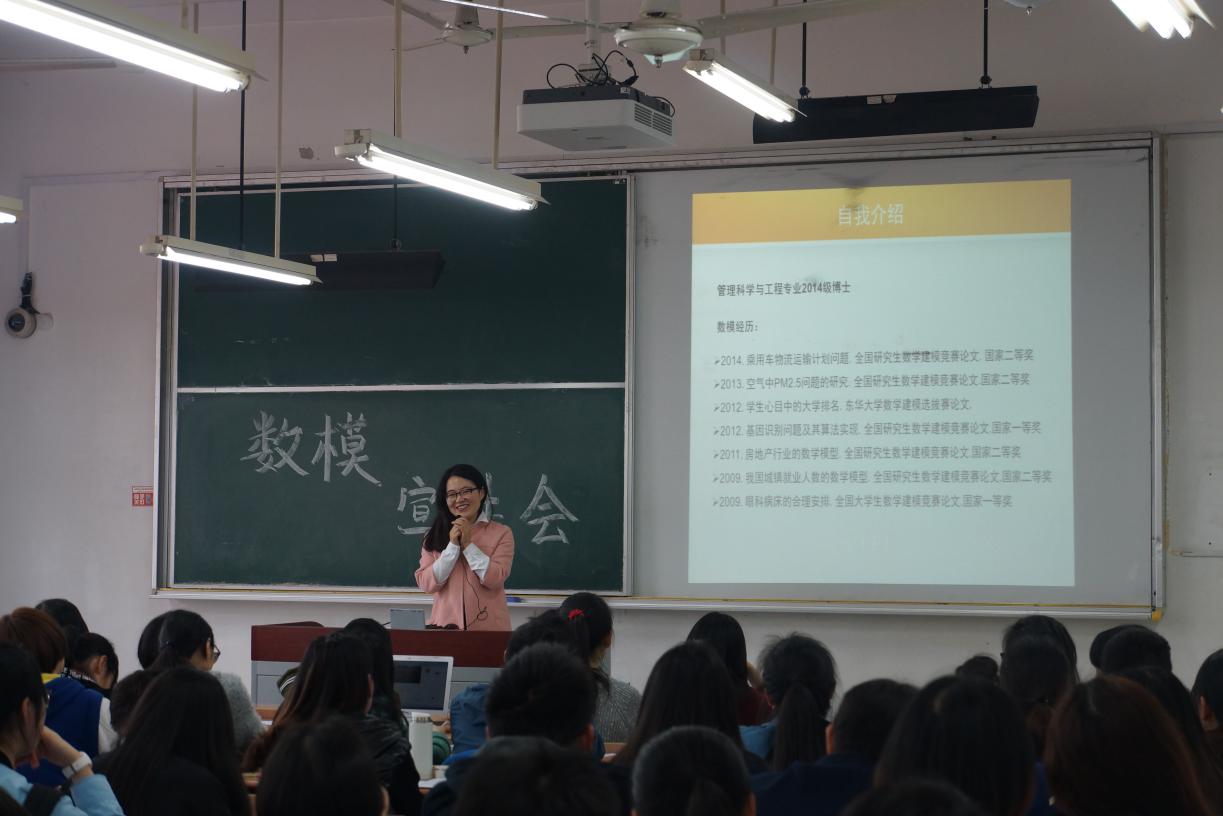 4月12日下午,经过数模俱乐部的精心策划和组织,数模宣讲会于延安路校区四教103教室举行,在宣讲会上,同学们聆听了数模获奖者罗煦丹、吴伊婷、范丹丹分享了她们参与数模竞赛的经历!本次宣讲会由数模俱乐部主办,多数91直播 本科生与研究生参加了宣讲会。