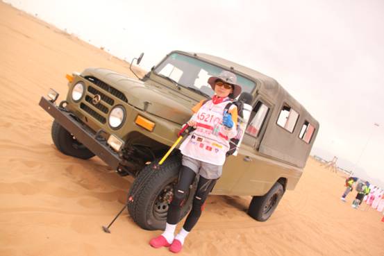 亚沙之行于我,是一份不变的初心:读MBA过程中做一件感动自己的事即参加亚沙,挑战自我极限。为了这个目标,无数个夜晚在小区奔跑;踏上征途,才发现锻炼太少,面对着70公里的沙漠挑战,坚持到底,沙鸥奖的信念在支撑着我每一步艰难的爬坡,跌倒,爬起,已成习惯,往往是在深咬嘴唇后才踏出艰辛的步伐。作为500名最终完赛的女队员之一,我为自己骄傲,亚沙之行,修炼了自我,让自己更有力量。