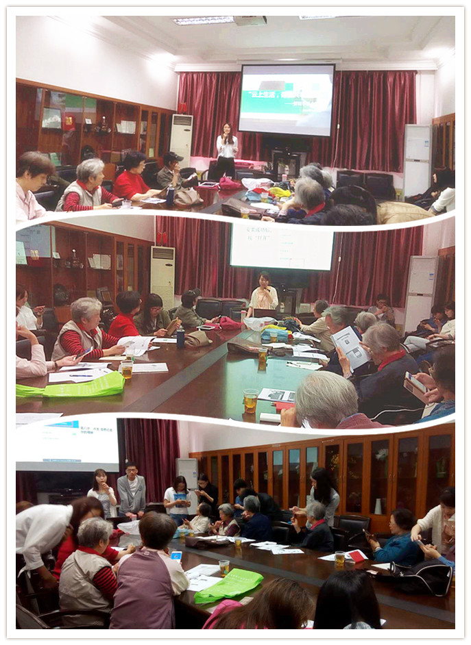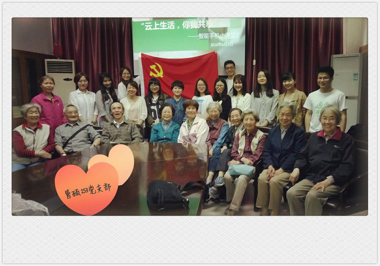 天公不作美,但是风雨无阻的不止有志愿者的敬老之行,还有老人们风雨难以冲减的学习热情。此次活动,我支部共13名成员作为志愿者参与本期培训课,退管会共有13位老人参加学习。其中本期课堂的主持由副支书冯亚男同志担任,朱行力与张怡先后作为主讲为老人们讲解“百度云”和“墨迹天气”APP的使用,其余成员作为台下手把手助讲。