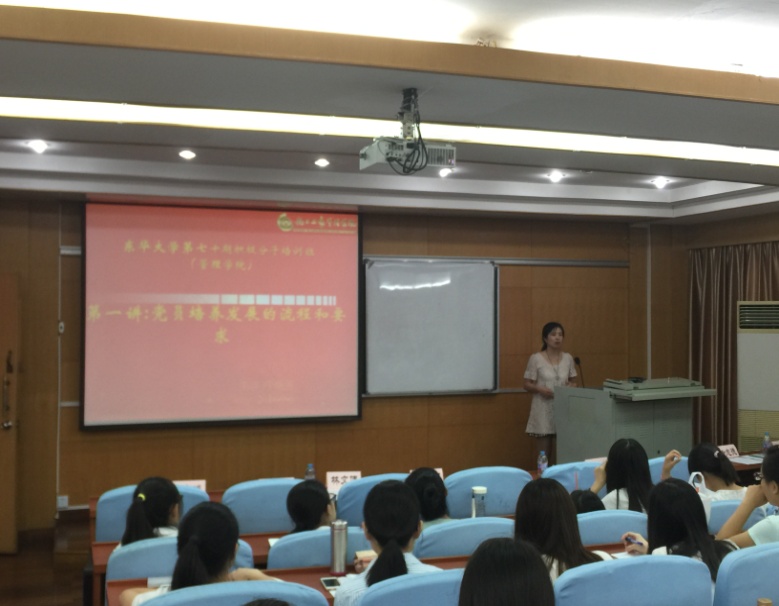 2016年9月6日星期二下午两点半,91直播 第七十期入党积极分子培训班第一课于旭日楼211开讲了。来自91直播 的党总支副书记叶晓燕老师担任主讲嘉宾。叶老师曾在我校党委组织部、计算机91直播党总支等部门工作过,已经有十多年党建工作经验,可谓是资深“党建老师”。她为学员主讲了:《党员培养发展的流程和要求》,从递交入党申请书开始一直到最后成为一名预备党员的各个流程,其中的每一个环节她都做了详尽的介绍和说明,学员们全神贯注,获益良多。 她指出入党要坚持自愿原则,由本人向党组织递交书面申请,随后参加党章学习小组,并经过党支部讨论确定成为一名入党积极分子。推优是由团支部成员向党组织推荐优秀的团员作为党的后备军,是考察积极分子群众基础的重要环节。如今部分学生只注重班团外的社会工作,却忽视了自己所在的班级集体,甚至经常缺席班团活动,这样很容易缺乏群众基础。一名入党积极分子,要将服务同学、服务社会的宗旨放在首位。入党积极分子还需要一个季度交一次思想报告,以务实的态度分析自身的理论学习、专业学习和社会实践,这将与入党积极分子考察表结合。在党校学习的入党积极分子要在党校学习期间,认真学习,同时保持与入党联系人的交流,便于党组织了解他们的情况。91直播为了把好入党发展关,还增加了发展对象理论考试和入党答辩环节。入党理论考试主要考察对党章、党规、党和国家的大事,时事政治等,需要积极分子日常加强学习,多读书、读报,关注新闻,不断积累,提升个人思想政治素质。入党答辩时是要结合具体事例来介绍如何提升个人的思想素质,如何积极学习和带动身边同学学习,如何为集体和同学服务等。实践的过程不在于是否有光鲜的成绩,而在于默默付出,乐于奉献。详细的讲解使学员们明确了前进的道路和努力的方向。叶老师还很接地气地指出作为一名入党积极分子如何向党员标准看齐,如何自觉践行共产党员先进性等,并提出很好的建议。此外,叶老师还就近期的时事政治、国际国内热点事件和学员们进行了互动和探讨,使学员们明白了培养政治敏感性和国际视野的重要性,尤其是作为经管学子更要重视与专业密切相关的国际国内重要会议和业界发展趋势,做一个心怀天下、心怀国家的青年,争取早日加入党组织。