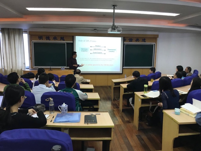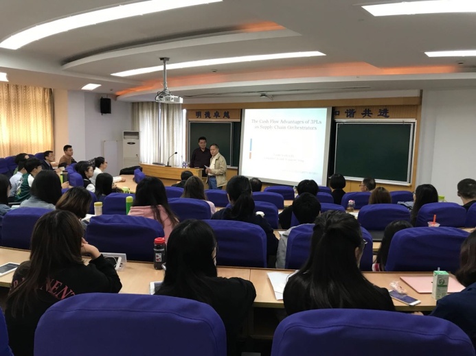 10月20日下午2:00,在同学们热烈的掌声中,复旦大学陈祥锋教授在91直播 旭日楼306教室为师生们做了一场精彩的学术报告“3pls作为供应链供应商的现金流优势”。