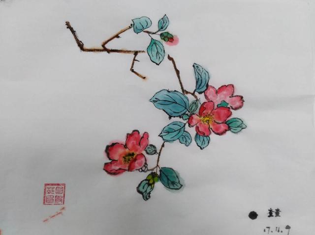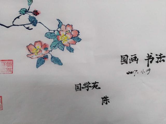 为了方便学生研习,本学期国学苑新购置的专业国画用具套装给同学们带来了不一样的体验。学员热情高涨,跃跃欲试。徐老师在活动前为学员精心准备了丰富的学习材料,打印了很多适合临摹的绘画图样供学员挑选。待学员各自挑选好临摹材料后,老师和同学们一起进入了忘我的国画世界中,仔细地观察、调色、勾勒、涂抹、晕染……仿佛我们骨子里就有曾几何时被遗忘的中华传统绘画技法的模糊印象。一切随心而动,平静自然闲适,整个绘画过程都是轻松愉快而又顺畅自如的。在这个过程中,学员们直观地感受了毛笔和宣纸在绘画中的运用,通过细心的体会逐渐摸索出一些调色和上色的技巧,对于完成作品又增强了信心。 看着自己一笔一划耐心完成的画作,内心充满了宁静的喜悦和满足,学员们很享受这个全身心地投入其中的过程,并且发现只要有强烈的兴趣,传统国画离我们日常的生活并不遥远。后面国学苑也将引进更多教学国画技法的优秀书籍,以供同学们进行更加深入的国画学习,期待国学苑在广大学员的支持下越办越好! 以下为学员完成的几幅国画作品,以供读者赏鉴。