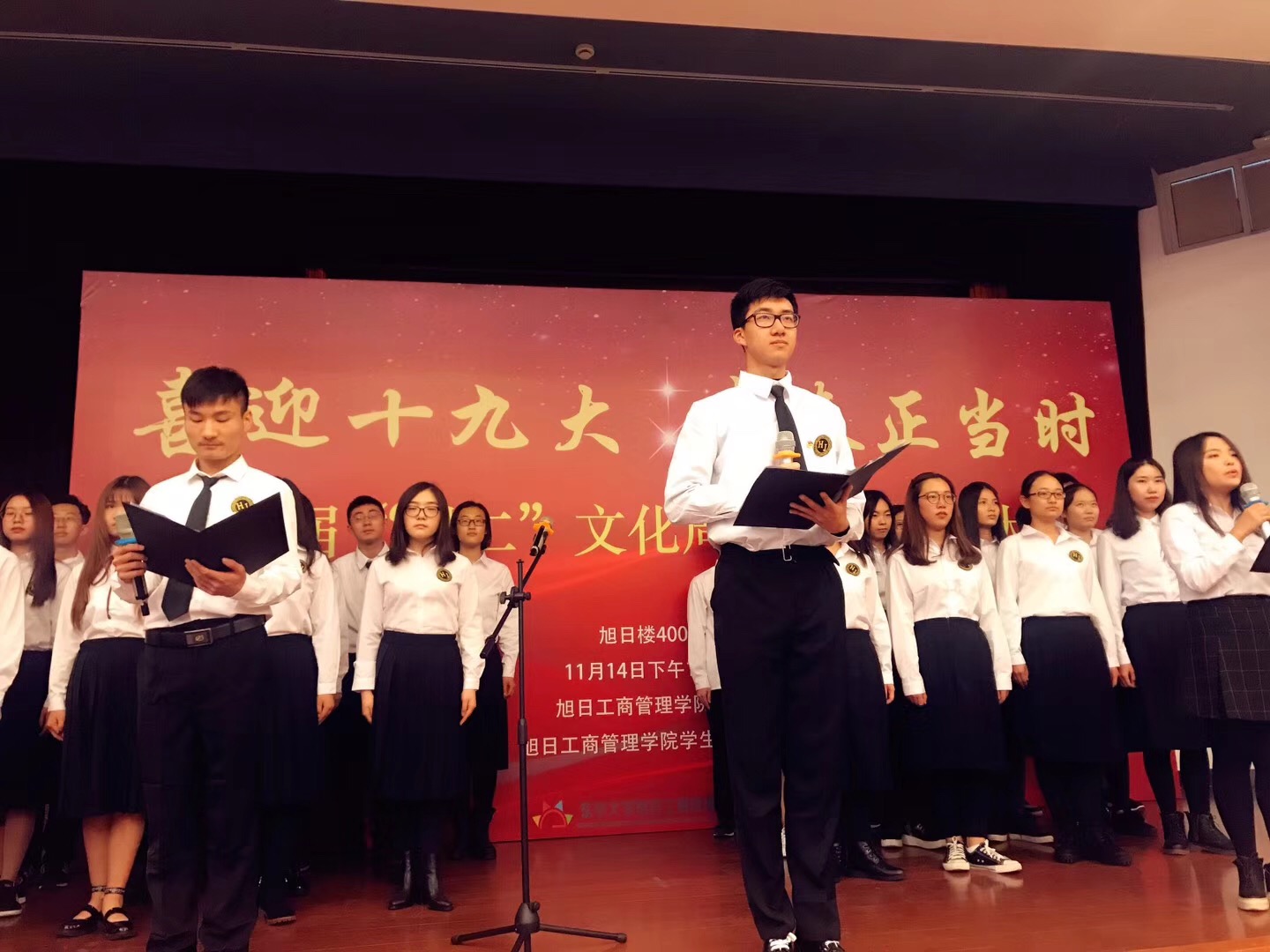 此次诗歌朗诵以“喜迎十九大•青春正当时”为主题,各团支部在诗歌朗诵中融入舞蹈、乐器、汉服、武术等中华传统文化元素,一展各支部的飒爽风采。诗歌朗诵主题均围绕中国梦、十九大等内容进行。营销1601团支部《喜迎十九大,思考与回答》突出全体同学在党的指引下,不忘初心、砥砺前行,青春的道路充满动力与生机的愿景;信管1601团支部《少年中国说》,声音振聋发聩,星火燎原十九大,新时代里换新天,激励着少年们砥砺前行;会经1601团支部则以五年为期,将其心声献给伟大的党,抒怀青春前行,点燃青春的焰,将十九大精神融入日常生活,迎难而上,到达理想巅峰;工商1601团支部以诗歌为经,以青春为纬,以东华为案,织就衣物,也织就天地,展开中华的辉煌画卷;人民有信仰,民族有希望,国家有力量,正如正确的人生信仰是一根脊梁,支撑着人生的大厦,商务1601团支部吟诵的《信仰》给予我们振奋人心的力量,让人拥有宽广的胸怀。一声声铿锵有力的声音环绕在报告厅内,展现如初升太阳般朝气蓬勃的精神,抒发了同学们对东华的热爱,表达了同学们坚定跟党走的信念。岁月虽无语,但青春仍有言。