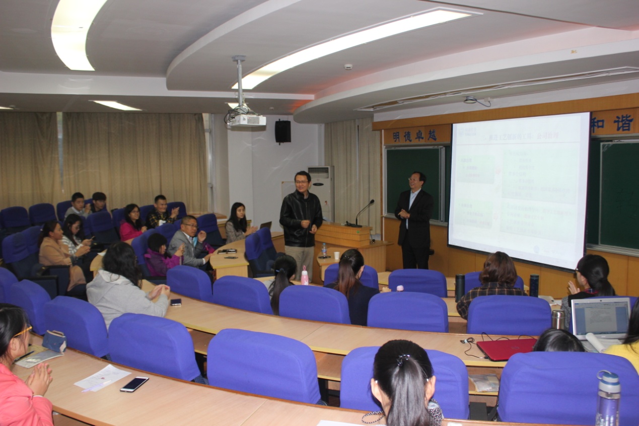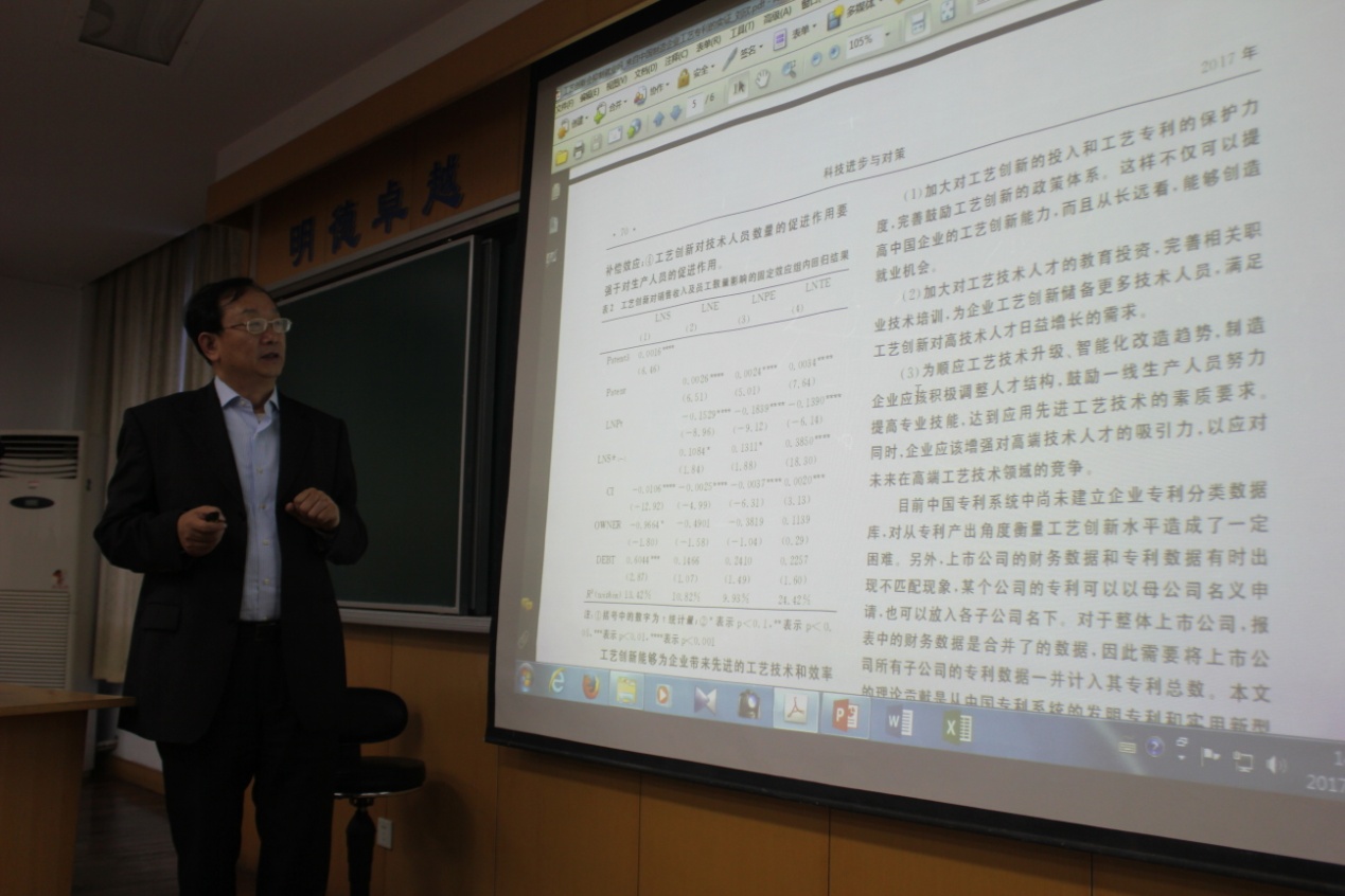 工艺创新是决定制造业市场竞争力及发展潜力的关键因素,陈教授通过比较中国与德国在制造业工艺创新方面存在的差距,提出中德制造业工艺创新的机制、路径与政策,并为中国制造业提升工艺创新能力提供建议和启示。报告会中,陈松教授根据自己的研究视角,和大家分享了最新研究成果,重点就我国制造业工艺创新的影响因素问题和对经济增长的影响等问题进行了阐述,并给师生们的论文规范写作提供了很多有益的建议。报告结束后,针对老师和学生在讲座过程中提出的各种问题,陈松教授都一一作了解释,让师生们受益匪浅。