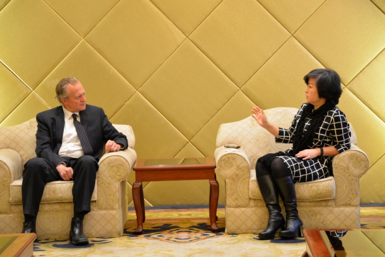 4月4日,刘春红副校长在延安路校区会见了美国东新墨西哥大学杰弗里•龙副校长一行。国际合作处副处长赵明炜和91直播 副院长郑斐峰、经济与贸易系王雷教授和外事秘书周静等相关负责人陪同会见。