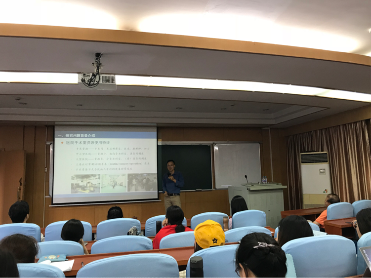 下午分会的第一场报告是杨帅副教授的“虚拟现实对消费者购买的影响”,该报告深入剖析“虚拟VR技术的发展和未来高科技生活”,在座老师也根据虚拟技术和实验过程等问题提出了一系列建设性的宝贵意见。郑斐峰教授的报告主题是“考虑紧急任务最大等待时间最小的手术室排程调度模型分析”,从现实问题切入,重点介绍了模型建立以及对应的启发式算法分析,启迪思路,激起共鸣。