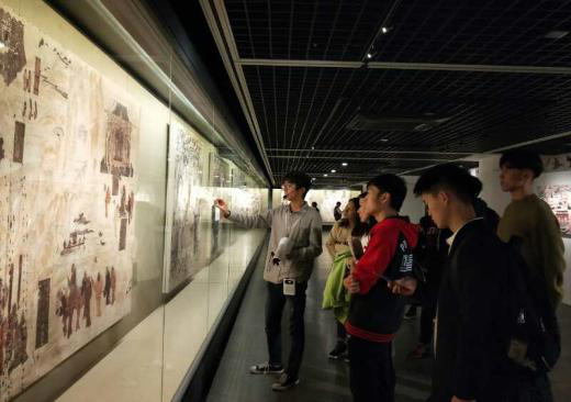 上财档案馆工作人员向同学们介绍敦煌壁画