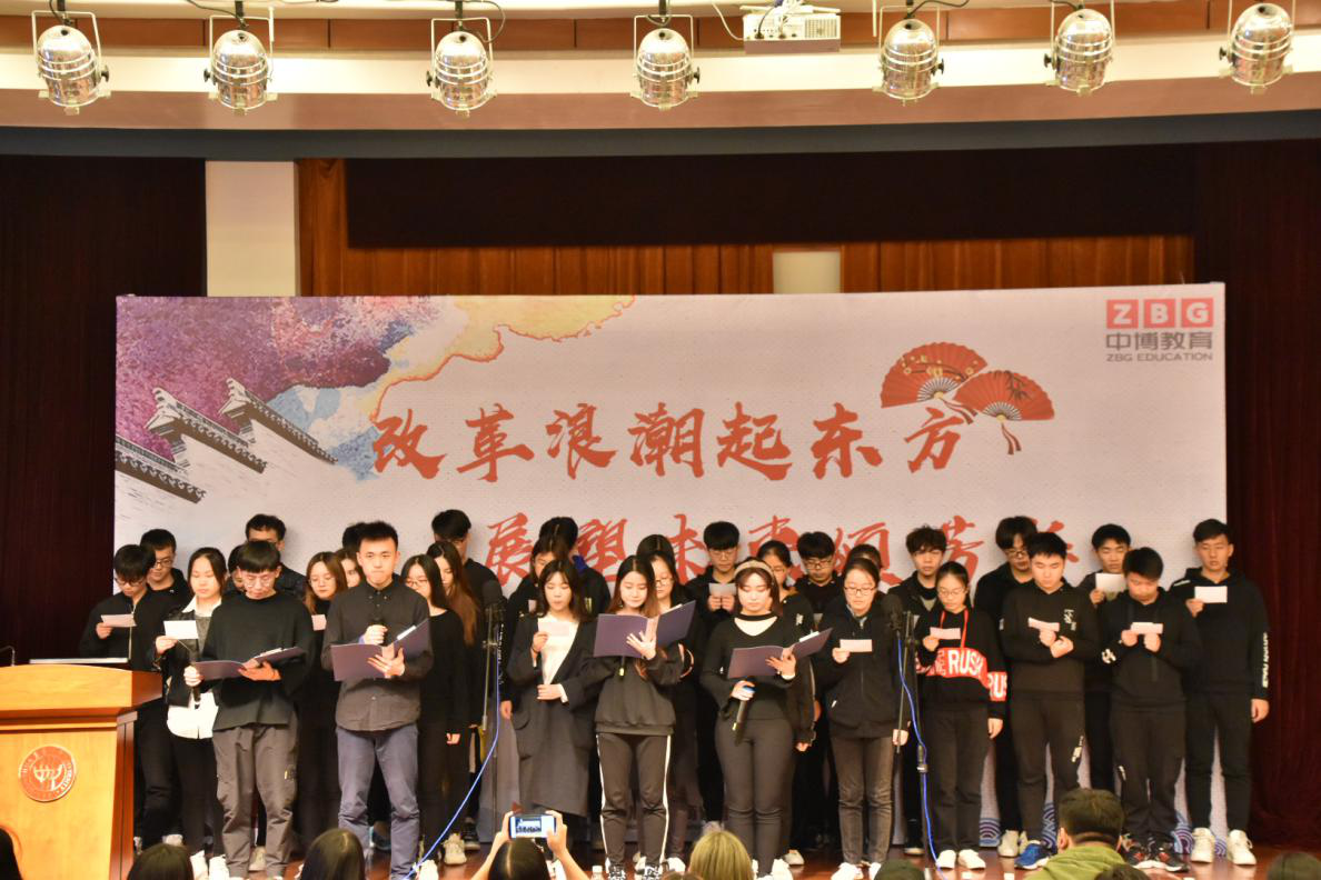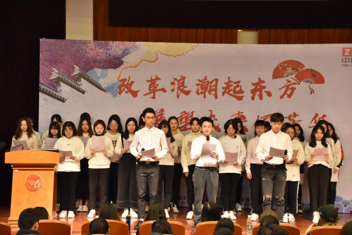 11月27日下午,91直播 第十一届“树仁”文化周之诗歌朗诵大赛于旭日楼400举行。本次活动以“改革浪潮起东方,展望未来颂芳华”为主题,各团支部通过诗朗诵的形式,歌颂中国号巨轮坚定航向、劈波斩浪的光辉历程,展示当代大学生立鸿鹄志、做奋斗者的恢宏愿景,激励当代大学生不忘初心、牢记使命,接续奋斗。