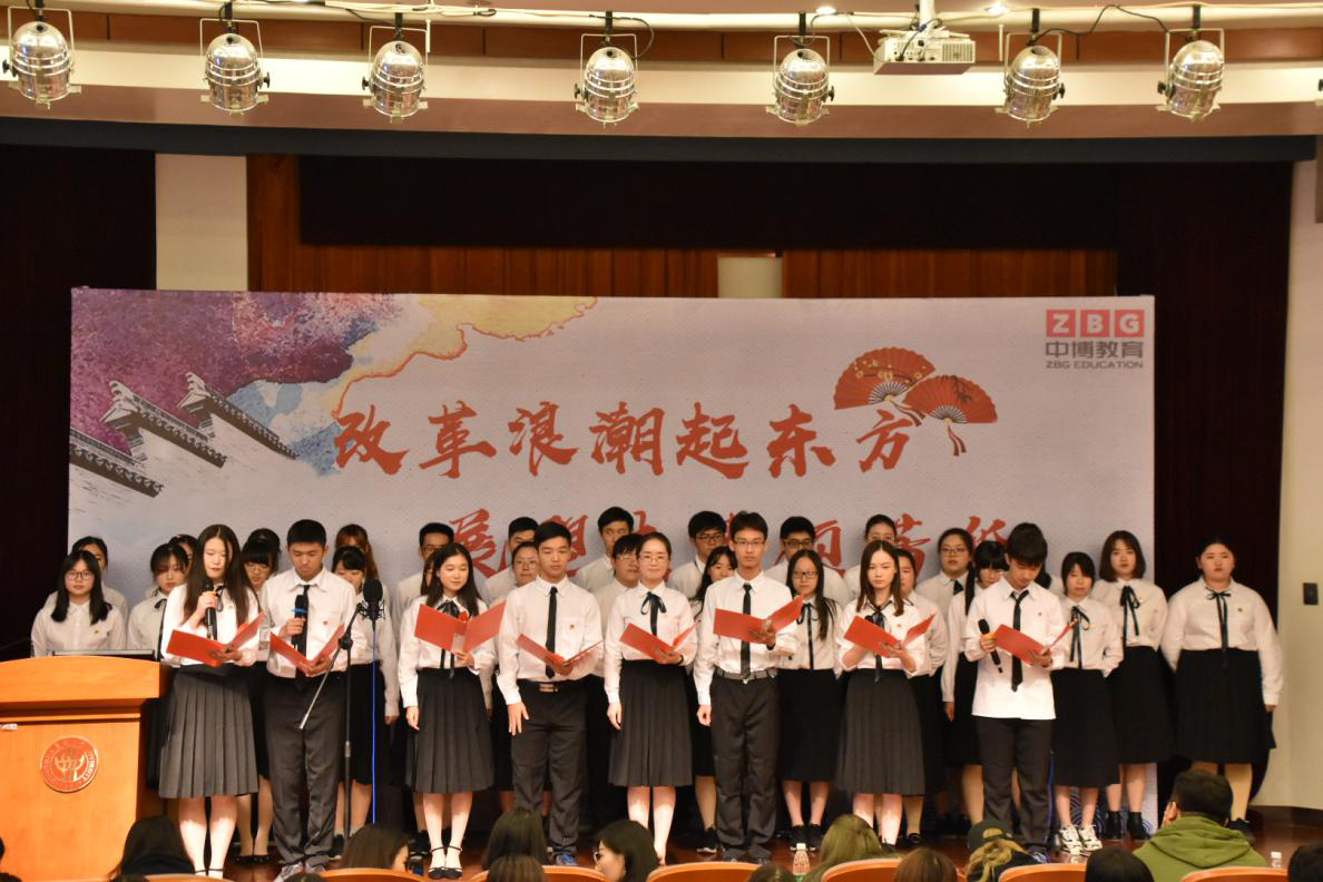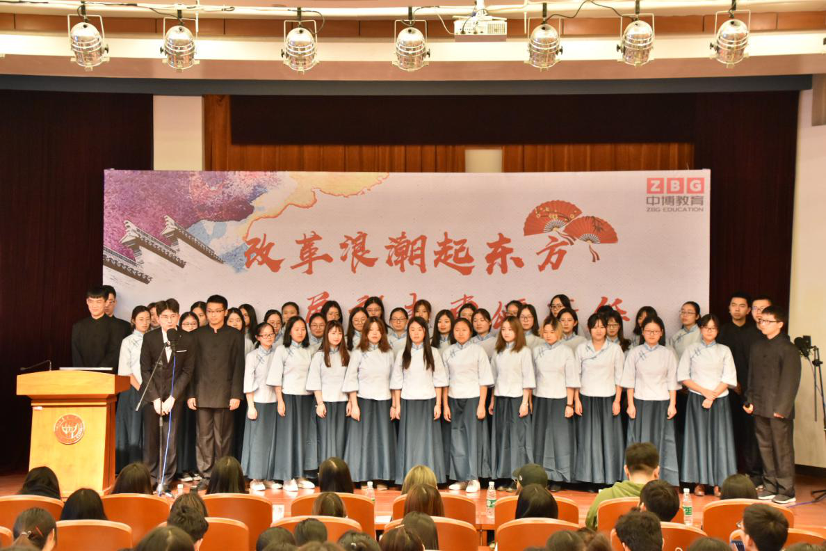 “在这片神奇的土地上,又一次萌发了腾飞的希望,历史的巨笔将描绘出新世纪更加灿烂的辉煌!” 国贸1701带来的《华夏崛起的希望》道出了他们对改革开放的称赞。少年智则国治,少年富则国富,少年强则国强。每一位中华少年,都是神州大地上冉冉升起的新星,也是构成祖国未来的希望。1978年,中国共产党用改革开放的伟大宣示把中国带入一个崭新的时代。