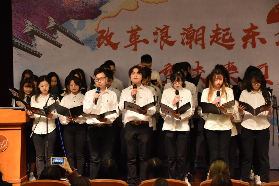“伟大的中国共产党,带领着十三亿中华儿女,开辟着民族复兴的航线!”金融1703以一首《赞赞新时代》为改革开放所取得的丰硕成果点赞。半个世纪的搏击,渊远流长;时光的琴弦,弹唱着今日辉煌的旋律。新时代下的他们,为中国点赞,为青春点赞! 诗歌朗诵大赛提供了一个平台,增强各班级的凝聚力并激发其创造力,同时丰富广大同学的校园生活,全面提高同学们的综合素质。通过本次诗歌朗诵比赛,各班级采用自己的方式阐释青春,表达对祖国、学校和生活的热爱。同时,活动结合了纪念改革开放四十周年的重要精神,并将其融入诗朗诵比赛之中,使得同学们重温了历史,不忘初心,砥砺前行。 撰稿人:陈潇越 |