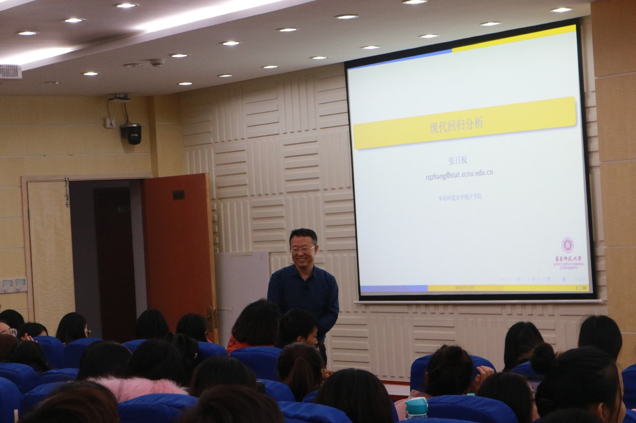 2018年12月13日(周四)16:00,华东师范大学统计91直播张日权教授为91直播 师生进行了一场以“现代回归分析(综述)”为主题的学术报告会。报告会在旭日楼418教室举行。 首先,张教授以空气污染对呼吸疾病的影响作为例子引出回归分析的来历,应用统计方法来将定性研究转向定量研究,介绍了常用的统计方法——回归模型,来研究变量之间相关关系。 接下来张院长着重介绍了几种传统和新型的回归模型,详细介绍了其建模过程,其中重点介绍了变系数部分线性模型(Varying-Coefficient Partially Linear Regression Model),该模型由张院长于2008年研究莺落峡水流的时候提出,指出进水量与放水量存在非线性关系,放水量同时也会受温度和湿度的线性影响。 其次,张院长针对三类不同的模型分别介绍其对应的估计方法。参数模型——常用的估计方法有最小二乘法、极大似然方法;非参数模型——对于存在位置函数的模型可使用泰勒展开式进行线性估计,也可以应用傅里叶基进行函数展开来估计;半参数模型——通过固定位置参数,转化为参数模型进行估计。