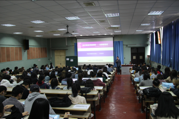 (丁伟老师发表讲话) 随后,管院志管主任——田明天同学向志愿者们简单介绍志愿服务地点、优秀志愿者评比制度、志愿服务注意事项与安全问题,其中着重强调本次时装周的证件使用说明。