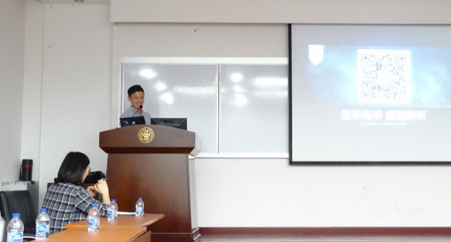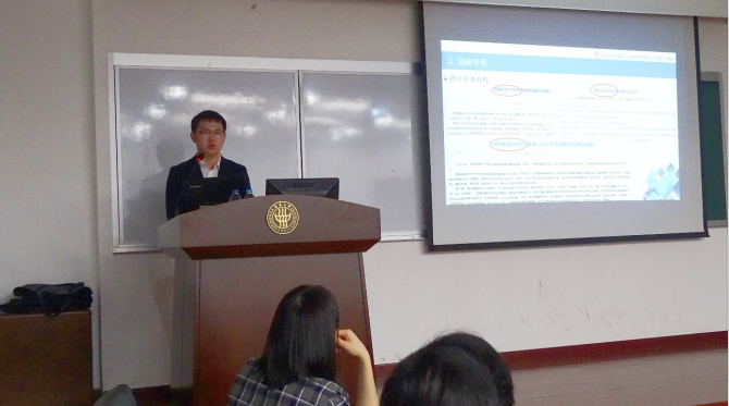 大学生创新创业中心主任、管理科学与工程研究生王鑫分别从创业项目、创新项目、以及创新创业赛事等三个方面进行经验分享。
