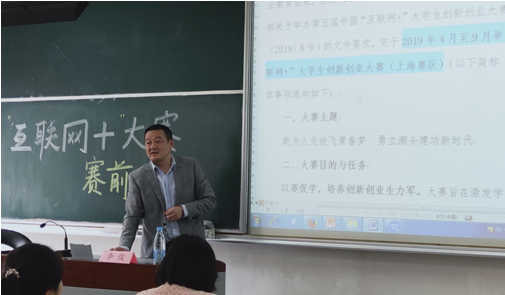 中国“互联网+”大学生创新创业大赛--赛前培训 中国“互联网+”大学生创新创业大赛即将拉开帷幕,校内选拔赛也将在5月底正式展开,为了帮助参赛学生更好地进行赛前准备,中国火炬创业导师、上海东华镜月资产经营有限公司总经理李俊老师为参赛同学进行了赛前的培训。本次培训于2019年5月14日下午一点半在我校延安路校区四教110教室举行。 首先,李俊老师强调参加竞赛,最为基础的是要了解其要求。培训大会上,老师根据文件向同学们介绍了大赛的比赛流程与基本规则。其中,李俊老师着重介绍了高教、青年红色筑梦之旅等各个赛道,帮助同学们合理选择参赛类型。很多同学提出了 “互联网+”究竟是什么的问题,李俊老师也向大家介绍了“互联网+”的具体内涵,解决了困扰大家已久的问题。