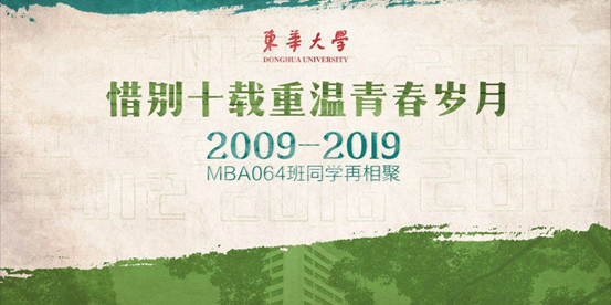 MBA064班的同学们,暂停繁忙的脚步,惟念同学情谊,一起回到熟悉的校园,参加毕业十周年的返校活动。这转瞬的十年,徜徉多少思念,又带走多少奋斗,时光不老,你我不散,6月15日,我们在东华等你回家。