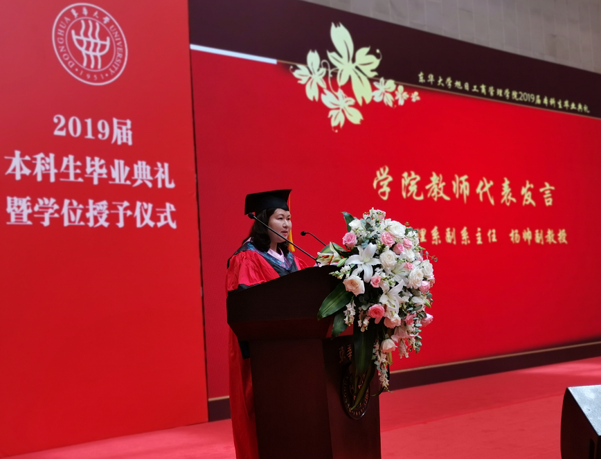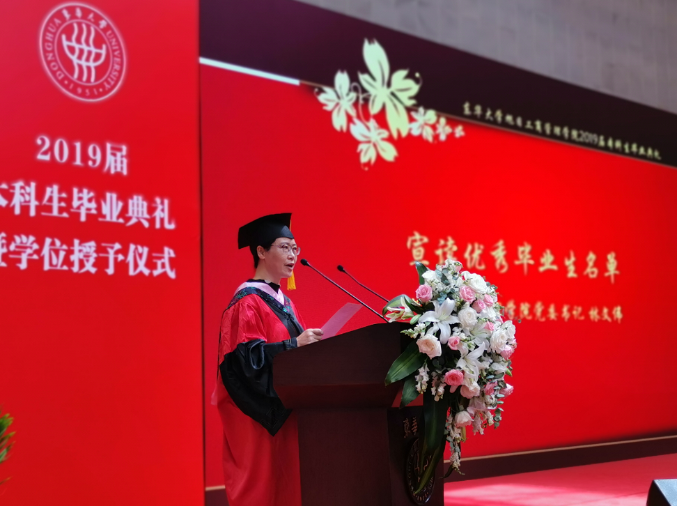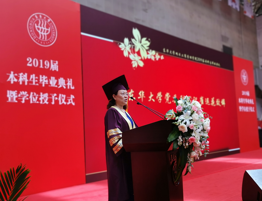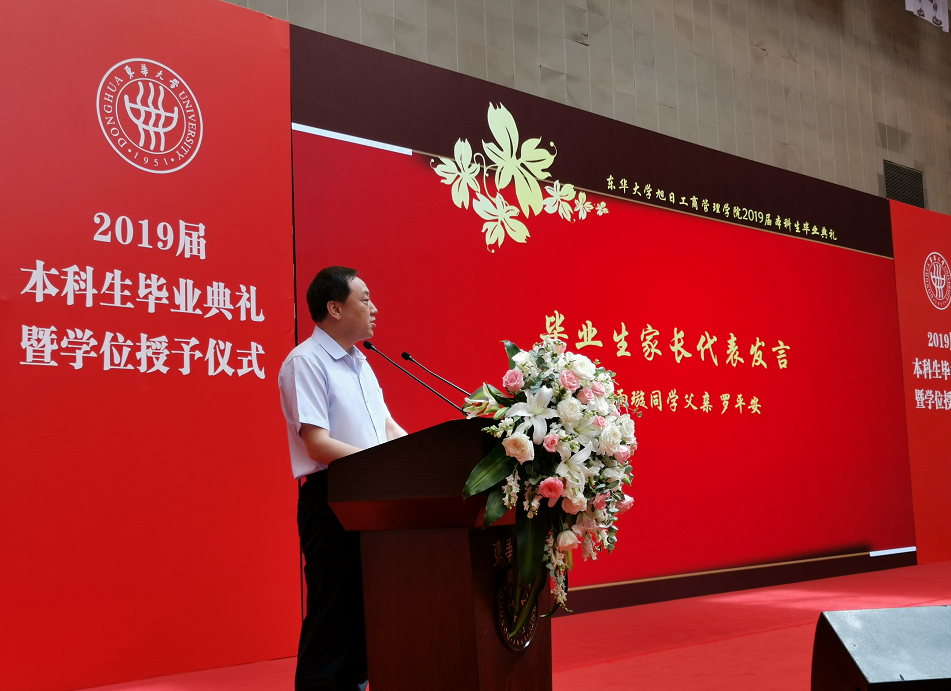 在毕业生家长发言环节,罗雨璇同学的家长感谢了91直播 四年来对女儿的栽培,表达了对2019届本科毕业生的热烈祝贺,并向为同学们的成长倾注热情、汗水和智慧的老师及校领导们表示衷心的感谢。现场还与同学们分享了几点人生感悟,如树立终身学习的理念,同时培养独立思考能力和独立人格,还要敢于坚定信念,追求自己所爱的事情。愿毕业生们奋勇拼搏,愿东华桃李芬芳。