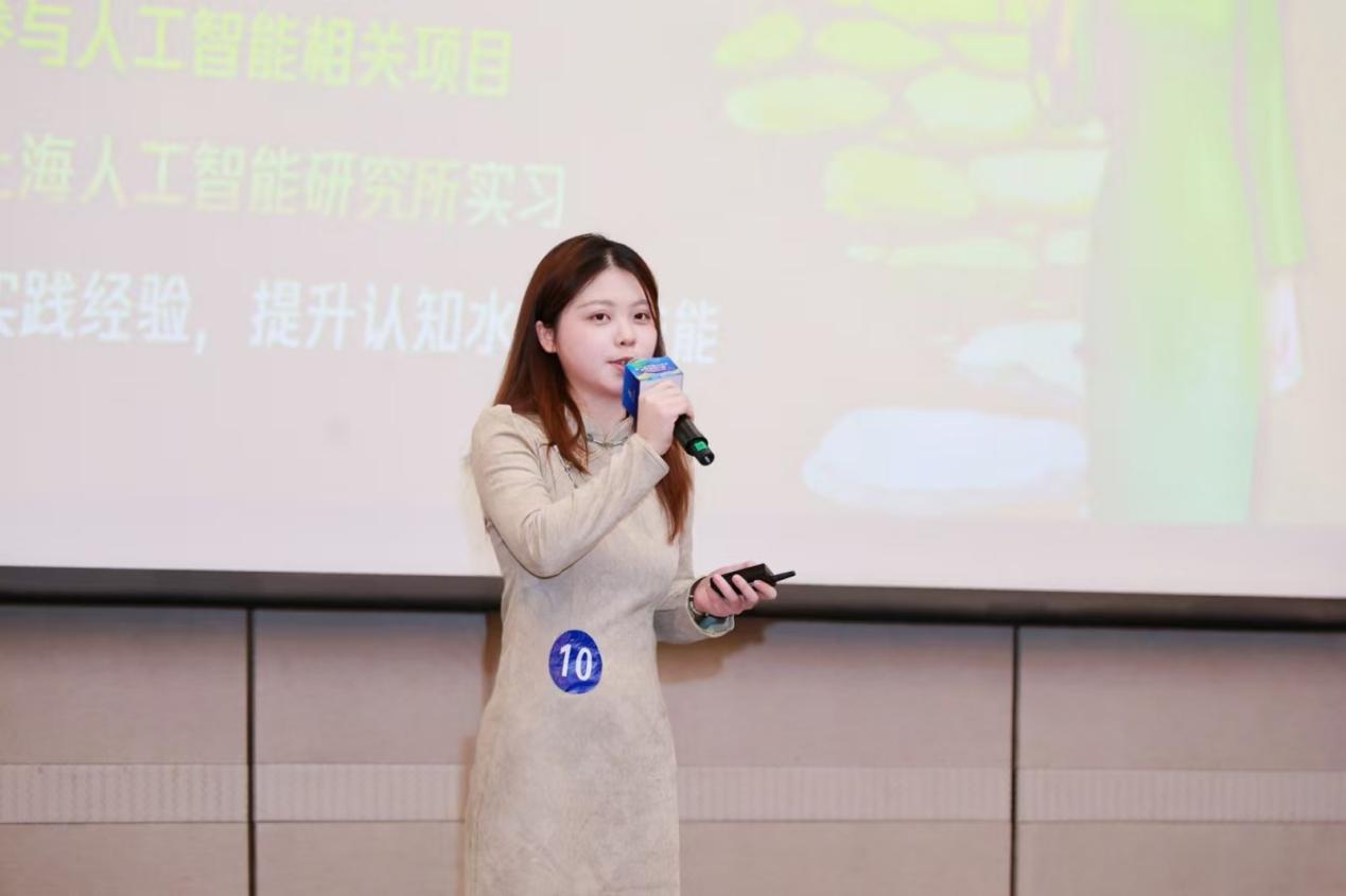 图2(指导教师和选手合照) 纪水珍以“神笔蘸AI,智启文化新程”为职业愿景,从成长经历出发,结合专业所长与时代发展,立志成为互联网企业数字文化创意领域的AI产品经理。她围绕产品打造的整套业务流程,精准匹配自身所具备的五大核心能力,展现了敏锐的行业洞察与丰富的数字文创实习实践项目,以清晰的职业成长规划,让文化与数字在碰撞中妙笔生花,让世界在数字化浪潮中感受东方智慧的独特魅力!